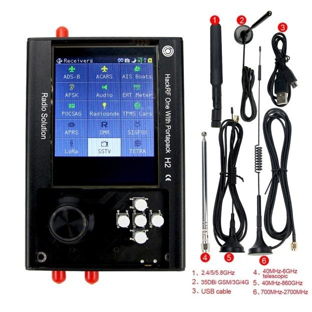 Portapack h5 + hackrf + antena + kit de cabo de dados sdr software definido rádio 1mhz-6ghz montado